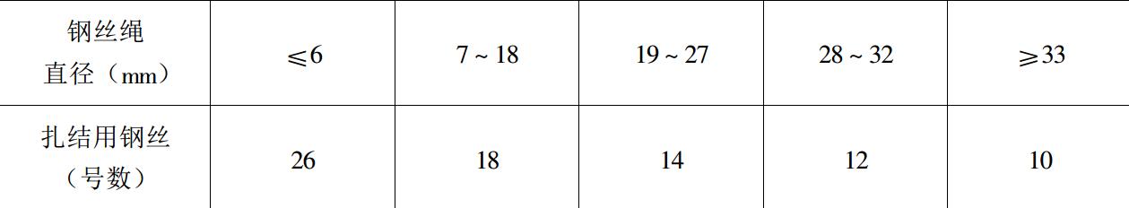扎結鋼絲的規格,可按鋼絲繩直徑大小選擇,一般如下列: