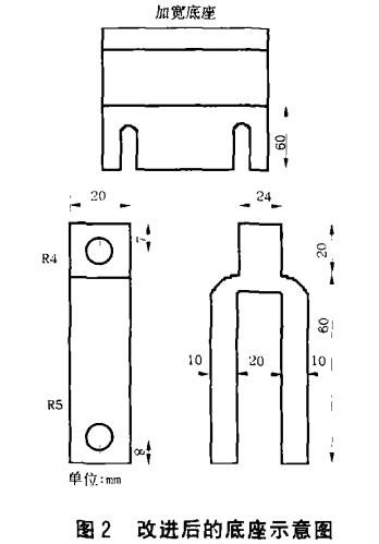 在維修工作中,常發(fā)現(xiàn)三相E型剎車電磁鐵變形,原因是電磁鐵動(dòng)鐵芯經(jīng)常受到?jīng)_擊, 使動(dòng)鐵芯與靜鐵芯接觸面被撞大,造成動(dòng)鐵芯的活動(dòng)導(dǎo)軌面受到磨損。一旦卡角動(dòng)鐵芯與靜鐵芯吻合面不能很好地接觸,電磁鐵內(nèi)部將形成較大磁阻,引起線圈產(chǎn)生足以使線圈發(fā)熱燒毀的電流,致使電磁鐵線圈燒毀。當(dāng)3個(gè)線圈中任意1個(gè)燒毀,電磁鐵吸引力平衡被破壞,另外2個(gè)也就很快跟著燒毀,只好將3個(gè)線圈同時(shí)換掉。這種電磁鐵在 設(shè)計(jì)時(shí)因考慮到簡潔,動(dòng)鐵芯與制動(dòng)拉桿之間只有一根連桿,極易造成動(dòng)鐵芯的不平衡使鐵芯被卡住,致使制動(dòng)電磁鐵線圈發(fā)熱燒毀。在易燃易爆場所更換線圈時(shí),必須裝上防爆裝置才能試車,這時(shí)無法觀察到鐵芯的動(dòng)作情況,常常造成返工。為了克服電磁鐵線圈經(jīng)常燒毀的問題,經(jīng)過仔細(xì)觀察發(fā)現(xiàn),如果將制動(dòng)剎車調(diào)節(jié)到佳狀態(tài)時(shí),制動(dòng)拉桿的力約在68.6—78.4N之間,完全可以用MQI-513型、吸引力為78.4N、行程為25em的牽引電磁鐵來代替原有的三相式E型電磁鐵。按圖1先將原來固定三相電磁鐵的底座加寬6ocm,然后按電磁鐵底板的尺寸鉆孔,把電磁鐵倒裝上去。為防止電磁鐵的活動(dòng)鐵芯超行程滑脫出來在牽引電磁鐵活動(dòng)鐵芯與制動(dòng)器連桿之間,按圖2的尺寸重做一個(gè)。固定好電磁鐵后就可以把連桿與動(dòng)鐵芯用鋼梢固牢。