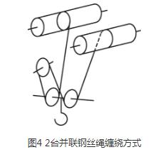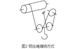 這種方式因結構形式加大,使得對適用場合提出更高要求,不能很好地適應空間小、吊鉤覆蓋范圍要求廣的場合。同時由于實際應用過程中鋼絲繩內應力的釋放,在使用一段時間后,會出現鋼絲繩出繩和入繩不能同步,導致亂繩現象。