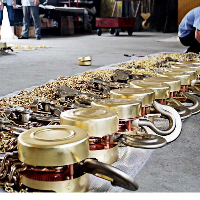 4、防爆手拉葫蘆外形美觀、經久耐用。手拉葫蘆及手動小車的手拉鏈條均為不銹鋼材料,其余可能有碰撞摩擦火花的地方均采用無火花材料制作或包覆。