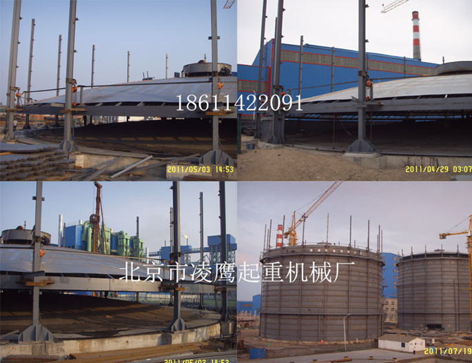 金屬儲(chǔ)罐分類(lèi)方式很多,根據(jù)頂部結(jié)構(gòu)形式可分為固定拱頂儲(chǔ)罐和浮頂儲(chǔ)罐,其中浮頂儲(chǔ)罐又可分為外浮頂儲(chǔ)罐和內(nèi)浮頂儲(chǔ)罐。目前,金屬儲(chǔ)罐的安裝方法主要有正裝法和倒裝法兩種。①正裝法:在儲(chǔ)罐罐底板鋪設(shè)組焊完成后,罐壁板自下而上依次組裝焊接,最后組焊完成罐頂、抗風(fēng)圈及頂端包邊角鋼等,較適用大型浮頂罐。主要包括水浮正裝法、架設(shè)正裝法(外搭腳手架正裝法和內(nèi)掛腳手架正裝法)等。②倒裝法:在儲(chǔ)罐罐底板鋪設(shè)組焊完成后,先組焊頂層壁板及包邊角鋼、組焊罐頂板,然后自上而下依次組焊每層罐壁板,直至最底層壁板,較適用大型固定罐。主要包括中心柱組裝法、邊柱倒裝法(液壓頂升和電動(dòng)葫蘆提升等)、充氣頂升法和水浮頂升法等。