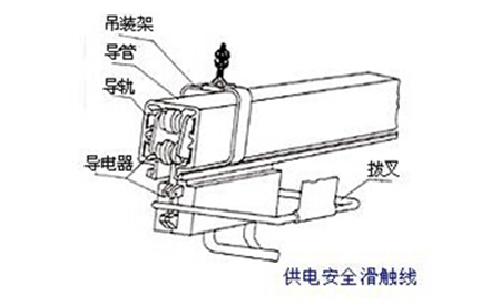 為什么滑觸線能夠在電動葫蘆行業應用的比較廣泛呢,因為它在運行的時候人體及異物接觸不到導軌,杜絕觸電事故,保證使用安全,特別在各種起重機械得到廣泛的運用。因為場合的不同,電動葫蘆電源線一般要求靈活性高,可以經得起彎、折、扭等動作;而安全滑觸線主要是要求場合固定,路線穩定,不能亂移動。來說一下電動葫蘆的滑觸線由兩個部件組成的,導管,導電器兩種以及一些其他的部件構成。如下圖所示: