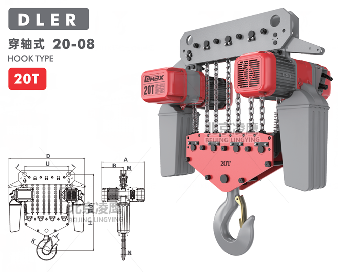 20噸DLER環(huán)鏈電動葫蘆穿軸式采用進口FEC/G80超強熱處理合金鋼鏈條。
