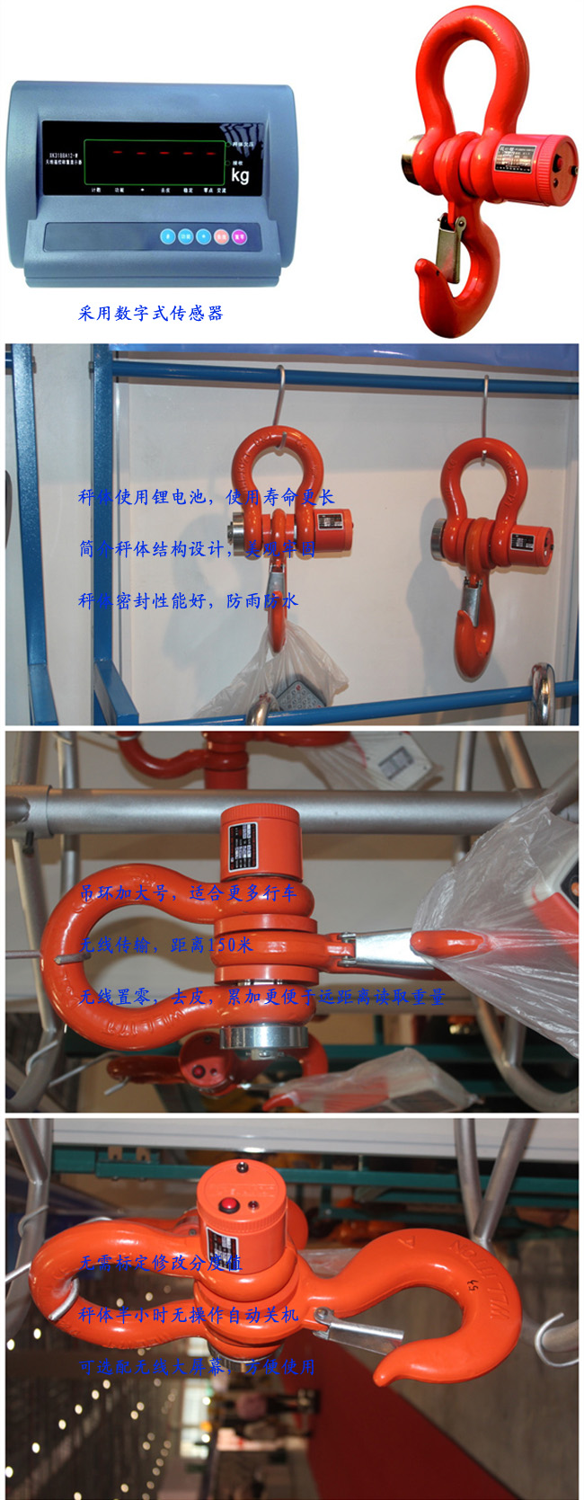 OCS-WZ系列數(shù)字無線直顯電子吊秤是我公司新研發(fā)的一款產(chǎn)品,將吊環(huán)吊鉤為稱體、傳感器、發(fā)射、電源結(jié)合為一體的新型稱重設(shè)備,采用無線傳輸顯示,可直接掛在起重機(jī)吊鉤上,使裝卸、計(jì)重同時(shí)完成,結(jié)構(gòu)輕便,操作簡(jiǎn)單方便,無線傳輸距離150米。